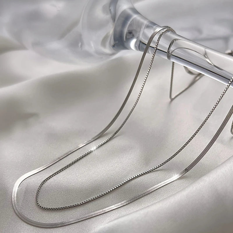 925 Sterling Silver Double-Layer Snake Chain Necklace – Timeless Unisex Design with a Touch of Retro Elegance