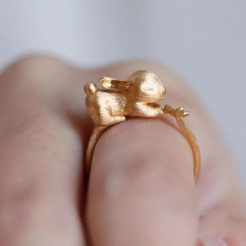 Cute & Exquisite Rabbit Jewelry Set – Fun Matte Ancient Gold Earrings, Ring, and Necklace for Women, Perfect Gift for Girlfriend